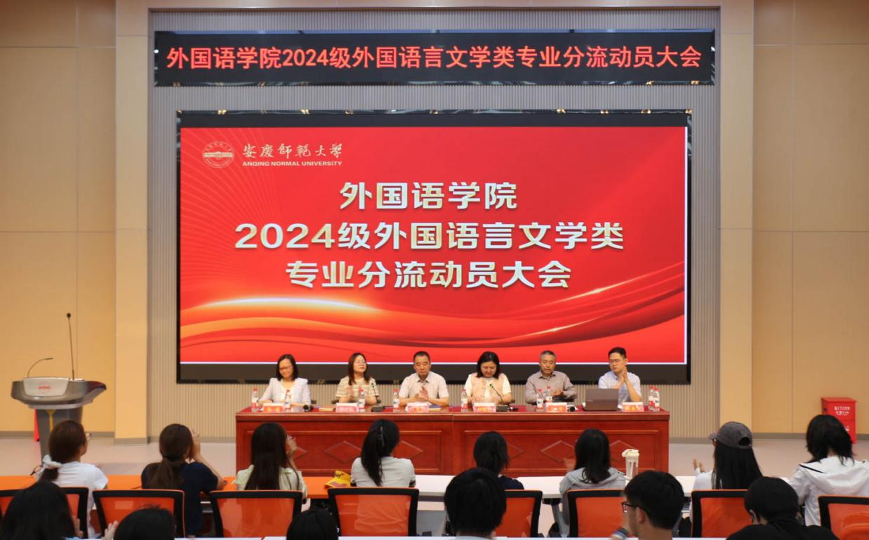 会议宣布了《2024级外国语言文学类专业分流工作方案》。方案明确了专业分流指导思想、培养模式、分流原则和工作流程等具体内容。