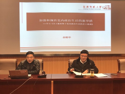 12月21日,公司党总支举行学习贯彻党的是十八届六中全会精神专题报告会,马克思主义公司党总支书记余精华教授作了《加强和规范党内政治生活的新举措》宣讲报告。谈球吧全体教职员工、第54期入党积极分子培训班学员参加了报告会。报告会由公司党总支书记、经理郝涂根主持。