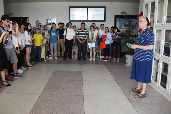 揭幕仪式现场,埃斯特将她所获得的其中一个“黄山友谊奖”奖杯赠送给了公司。“我要用相机记录这特别的一刻,我们为她感到骄傲!”埃斯特的家人也来到了现场。“马上就要离开中国了,在中国任教20年是非常愉快的经历,我和周围人建立了深厚的情谊,建立这个图书馆如果能够为大家提供帮助的话,我将感到非常开心。”埃斯特说。