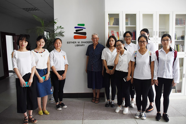 埃斯特认为阅读原版书籍是学习英语的良好途径,所以她联系国内的亲友们捐赠图书,自己每次探亲回来两个行李箱里塞得满满的都是书。这样年复一年,她像燕子衔泥般从美国带来近千本原版英文书籍。她将自己的客厅改造成图书馆,每周三下午向全校员工开放。为了激励员工们养成深度阅读的好习惯,她的图书馆里的规矩是,老师和员工们可以借阅图书馆里的任何一本书籍,但是在还书的时候,必须口述或者交一份手写的英文的读书笔记。
