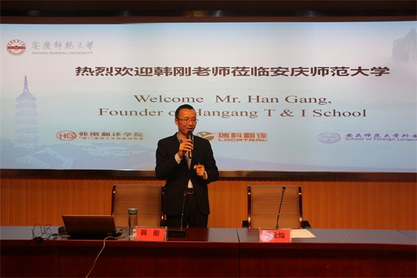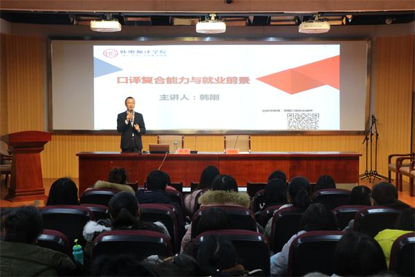 韩刚老师是韩刚翻译公司创始人,曾供职外交部新闻司,是国家外文局培训中心央企培训项目讲师,在口笔译培训领域享有较高声誉。此次讲座,是韩刚老师苏皖高校行的第五站,也是公司深化教学改革、推行“名师讲堂”的重要举措之一。(黄全灿)