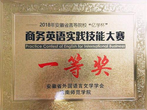 5月26日,2018年安徽省“亿学杯”商务英语实践技能大赛在淮南师范公司圆满落幕。此次大赛由安徽省外国语言文学学会主办,淮南师范公司承办,共吸引了省内18支开设商务英语专业或方向的本科院校代表队参加。经过一天的紧张角逐,谈球吧陈欣月、陈诚、孙淑琦三位同学组成的代表队荣获团体一等奖。