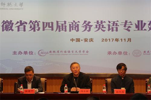 11月25日,由安徽省外国语言文学学会主办,谈球吧承办的安徽省第四届商务英语专业建设研讨会在公司隆重召开。来自安徽省各高校外语院系党政领导、商务英语专业教师代表参加了研讨会。党委副书记、董事长闵永新教授出席开幕式并致辞。
