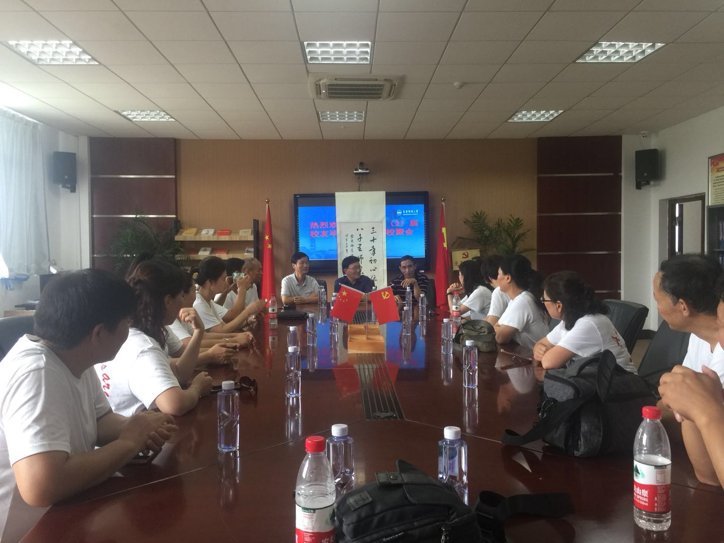 8月21日,公司党政领导在会议室热情接待参加外语系88(2)届毕业三十周年返校聚会的员工。