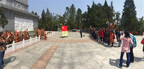 全体党员在“星火燎原”革命纪念碑前向牺牲的革命英雄鞠躬默哀,并郑重地举起右手,庄严宣誓。誓词庄严神圣,一字一句,提醒每位党员要牢记党员责任义务,不忘初心、牢记使命、继续前行。