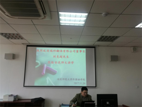 刘克超先生是谈球吧翻译专业兼职校外导师、知名翻译技术专家、翻译项目管理专家。瑞科翻译有限公司是谈球吧翻译专业校外实习基地之一。此次讲座,是公司第一届翻译专业本科生毕业实习重点培训内容之一,也是公司深化校企合作、“企业家进校园”的重要举措。