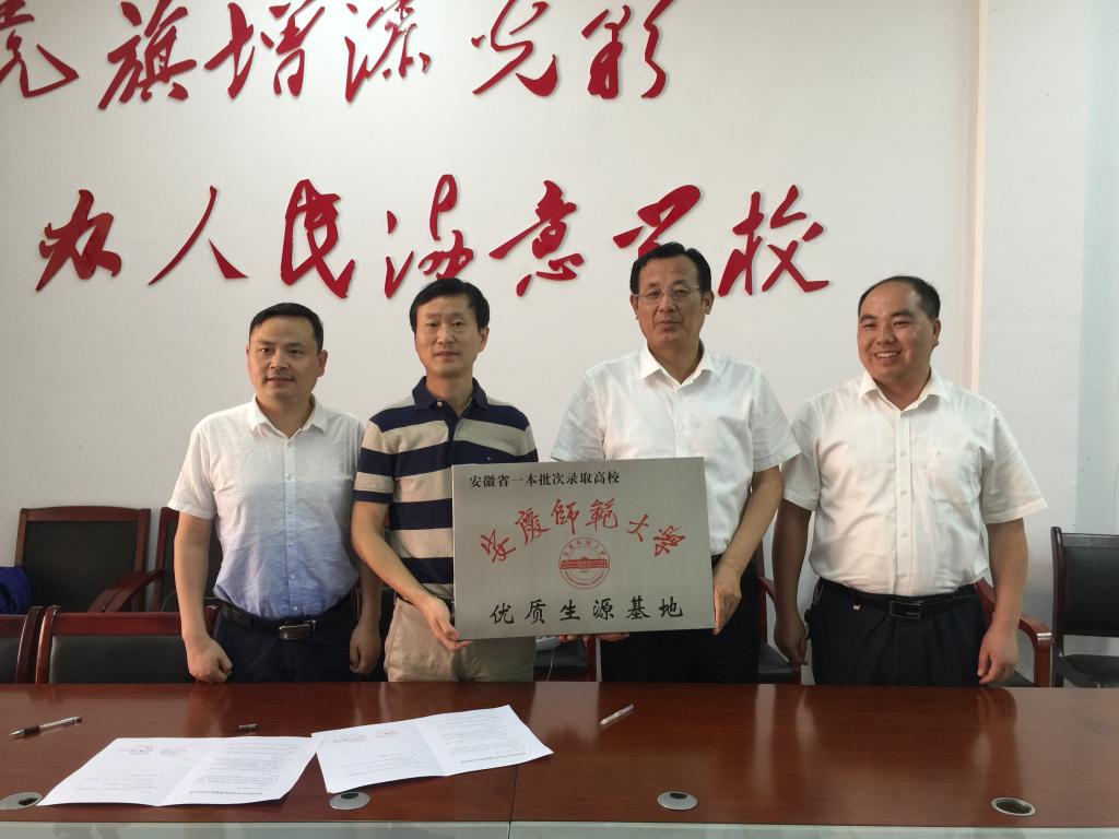 根据公司招生工作安排,近日,谈球吧副经理王先荣、副书记夏斐一行四人,赴安徽省蚌埠市、固镇县、怀远县、滁州市凤阳县等地省(市)示范高中进行招生宣传,并开展优质生源基地合作协议签订及挂牌工作。