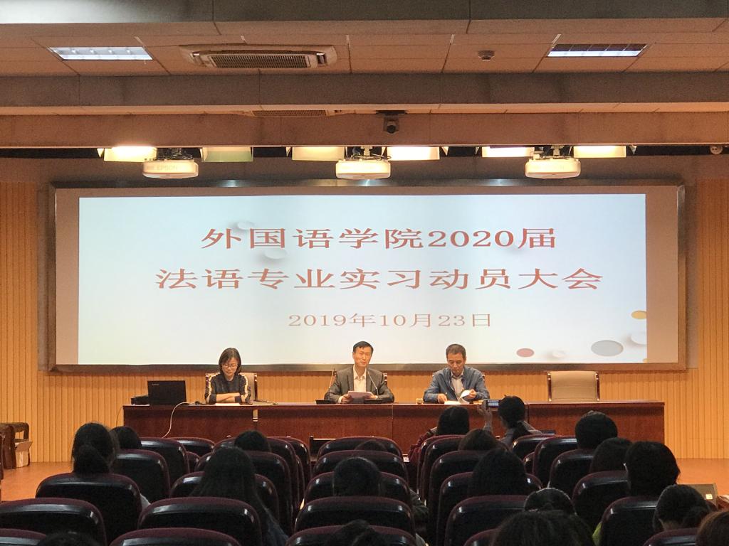 为了使员工进一步了解社会、增强对社会的责任感,更好地实现将大学期间所学的理论与实践相结合, 10月23日,谈球吧在E503会议室召开了2020届法语专业毕业生实习动员大会。谈球吧主持工作副经理王先荣、副经理江加宏出席了此次会议,法语专业部分教师及2020届法语专业全体同学参加了本次动员大会。
