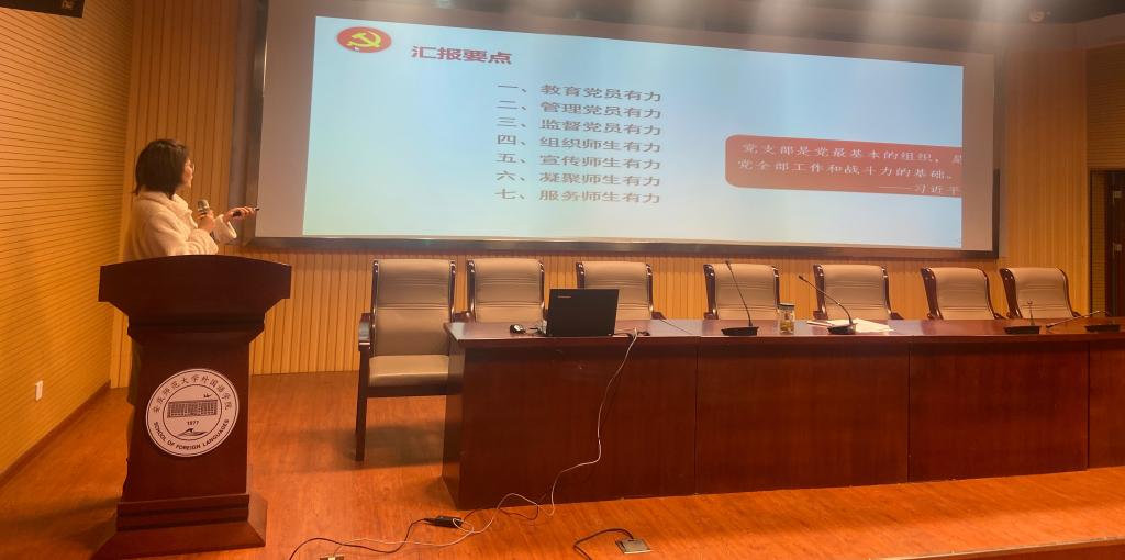 会上,10名党支部书记围绕一年工作、党支部七个有力标准建设以及特色品牌活动开展等情况逐一上台汇报展示,详细总结了各党支部一年以来以省级高校新时代党建设“双创”标杆院系党委建设为契机,充分发挥党员先锋作用,围绕公司中心工作推进事业发展所取得的各项成果。 2020年,各党支部攻艰克难,共同完成师范专业认证工作;翻译写作教研室党支部书记和商务英语员工党支部书记积极参与社区疫情防控服务,先进事迹被学习强国等媒体报道;公司五名员工党员获评校级疫情防控优秀志愿者;法语师生党支部员工刘童童获评安徽省“向上向善好青年”;公司“党建+创新创业”特色活动取得丰硕成果,员工项目在A类赛事中获得全国铜奖2项,安徽金奖3项。