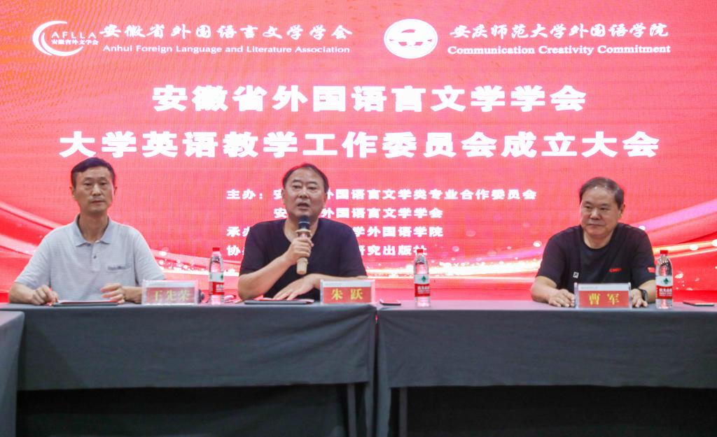 为进一步推动新时代安徽省高校大学英语教学深化改革、创新发展,促进省内各高校的交流与互动,7月16日,安徽省外国语言文学学会大学英语教学工作委员成立大会在安庆世纪缘酒店召开。来自全省37所本科高校的谈球吧经理、大学英语教学部(室)主任参加了大会。大会由安徽省外国语言文学类专业合作委员会主任、安徽省外国语言文学学会会长朱跃主持。曹军秘书长就大学英语教学工作委员会成员建议名单作了情况说明,并提请大会酝酿讨论。