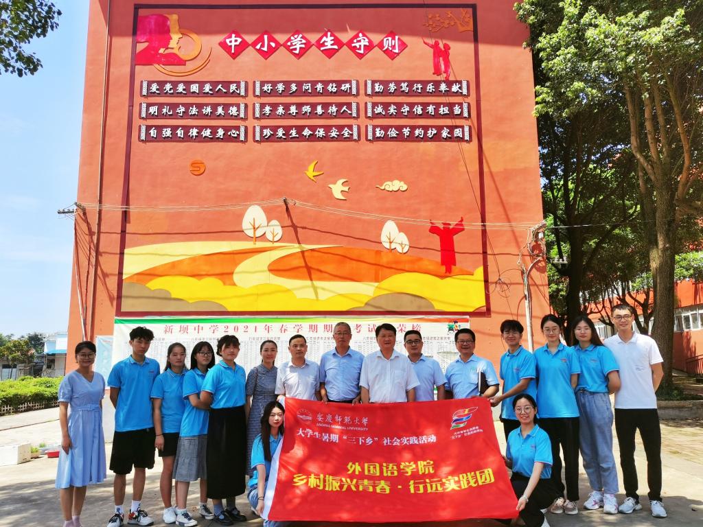 会上,公司党委书记李亦亮向高士镇政府和新坝中学对三下乡活动的支持表示真诚的感谢,他指出,近年来外国语公司呈现蓬勃发展的态势,员工质量和办学水平不断提升,综合竞争力和社会影响力不断增强。公司十分重视组织开展老员工社会实践活动,同时注重成果转化,在“挑战杯”“互联网+”等创新创业比赛中成绩斐然。三下乡活动对培养员工集体意识、独立意识和社会意识具有重要意义,是员工们走出校园,开展“第二课堂”的典型实践,有利于提高员工的综合素质。他希望同学们能坚定理想信念,通过社会实践,密切联系群众,助力乡村振兴。最后,李亦亮书记祝愿高士镇政治经济社会发展越来越繁荣、新坝中学立德树人教育越办越好。