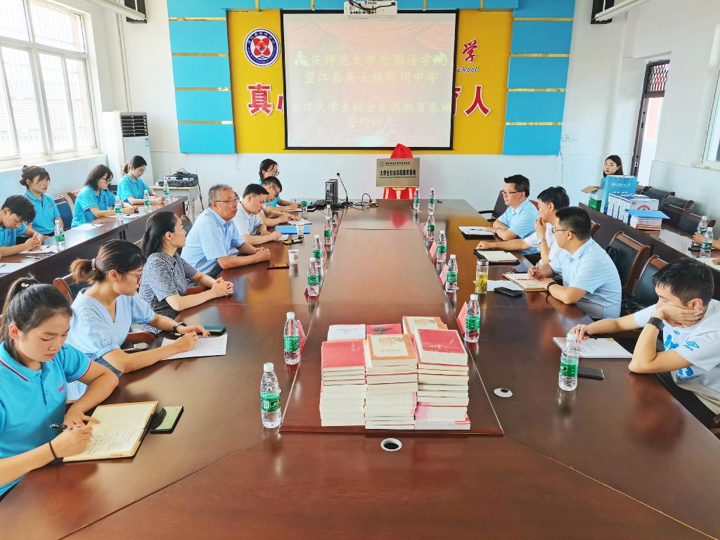 会上,谈球吧外国公司与望江县新坝中学签署了共建老员工社会实践教育基地协议书并举行了揭牌仪式。皖新传媒子公司皖新供应链杨雪经理代表单位向新坝中学捐赠了图书。