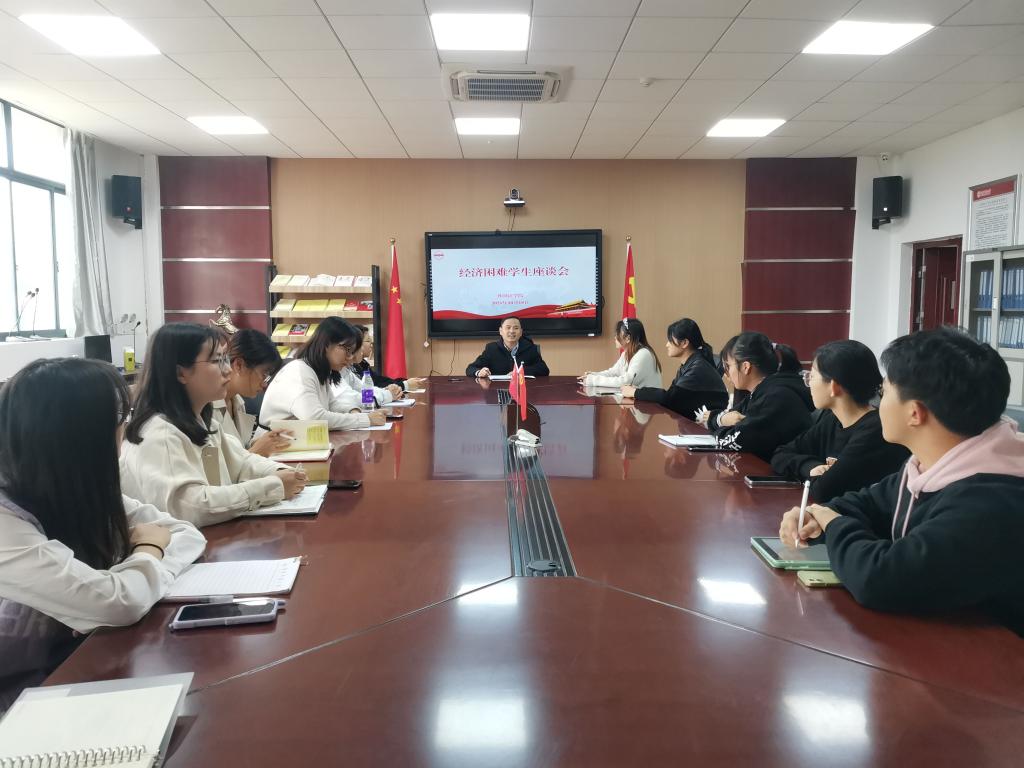2021年10月18日中午,谈球吧在E304召开经济困难员工座谈会,公司党委副书记夏斐、辅导员老师、部分经济困难员工参加了会议。