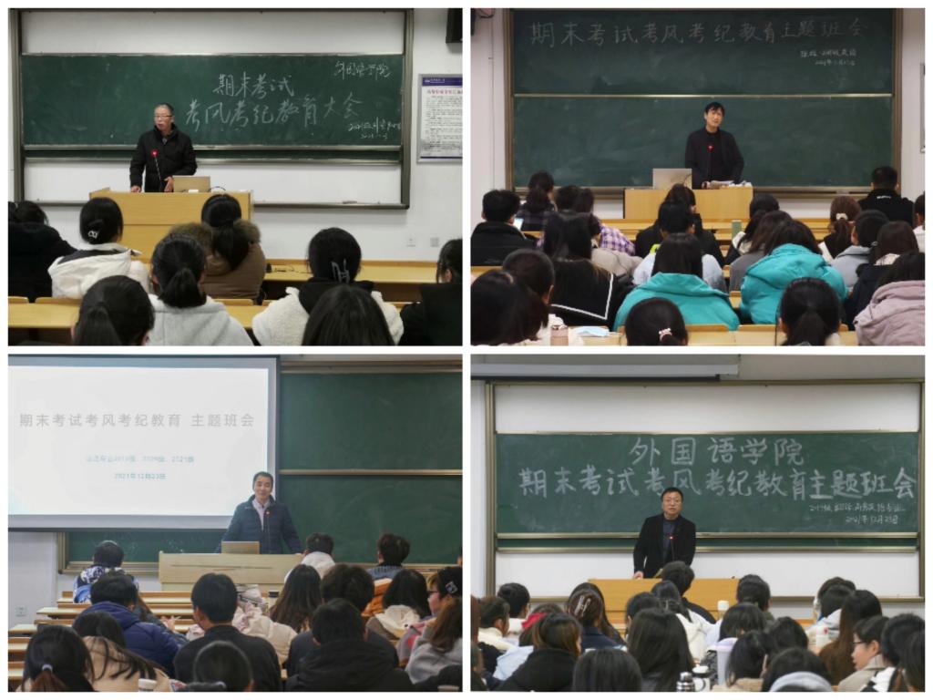 李亦亮谈及大学考试与高中考试的区别——只有累积的优秀,没有侥幸的成功。大学考试有五考:考水平、考公平、考人品、考班风、考管理。考试不仅是检验学习情况的有效途径,更是个人品质的体现。王先荣指出,诚信考试是对知识的尊重,确保考试结果的公正、客观,才能真正检验自身学习的效果。外语专业的员工需要学习更宽领域的知识,提高专业知识的应用能力,努力培养自己成为复合型人才。江加宏、黄全灿分别从不同角度向同学们说明了考试是教师了解教学情况、提高教学质量的重要途径,也是同学们检验一学期所学知识的重要方式,希望同学们端正态度,积极迎考,共同促进公司的优良学风。