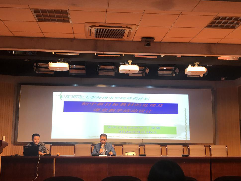 讲座伊始,丁家骏老师以自己的切身经历鼓励在座教师们要善于抓住机会,他立足初中新目标教材的处理及课堂教学活动设计这两大模块,精辟地分析如何在具体实践中提升教师个人能力,达到期冀的教学目标。