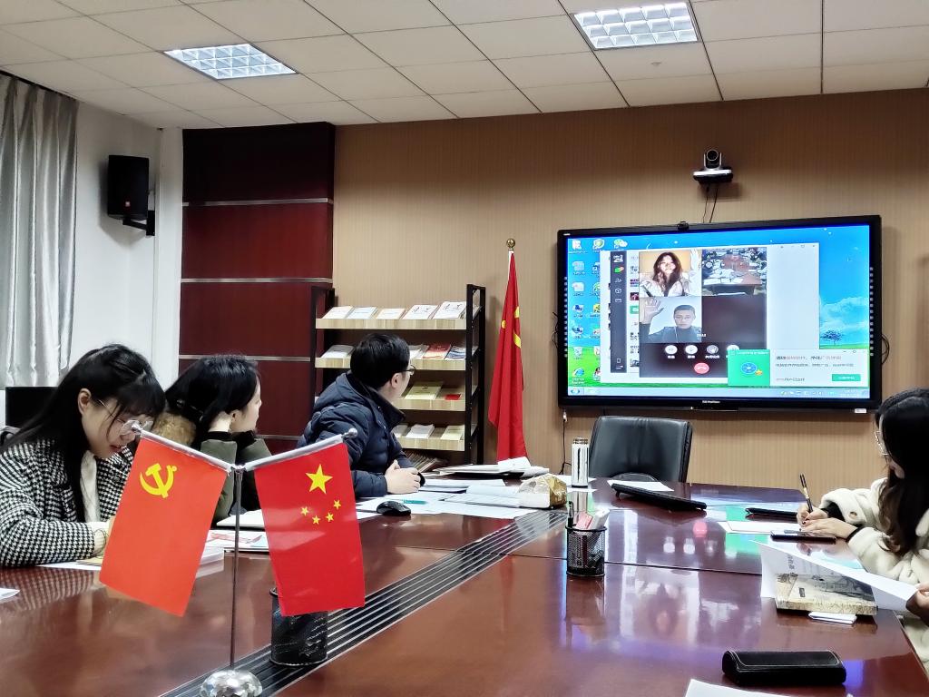 北京时间12月4日19时,美国当地时间12月4日6时,英语(合作)专业员工党支部一场特殊的接收新党员大会在E304会议室举行。出席本次会议的六名党员中,有两位分别就读于美国索尔兹伯里大学和香港中文大学,他们通过视频连线的方式履行了党员的义务、行使了党员权利。