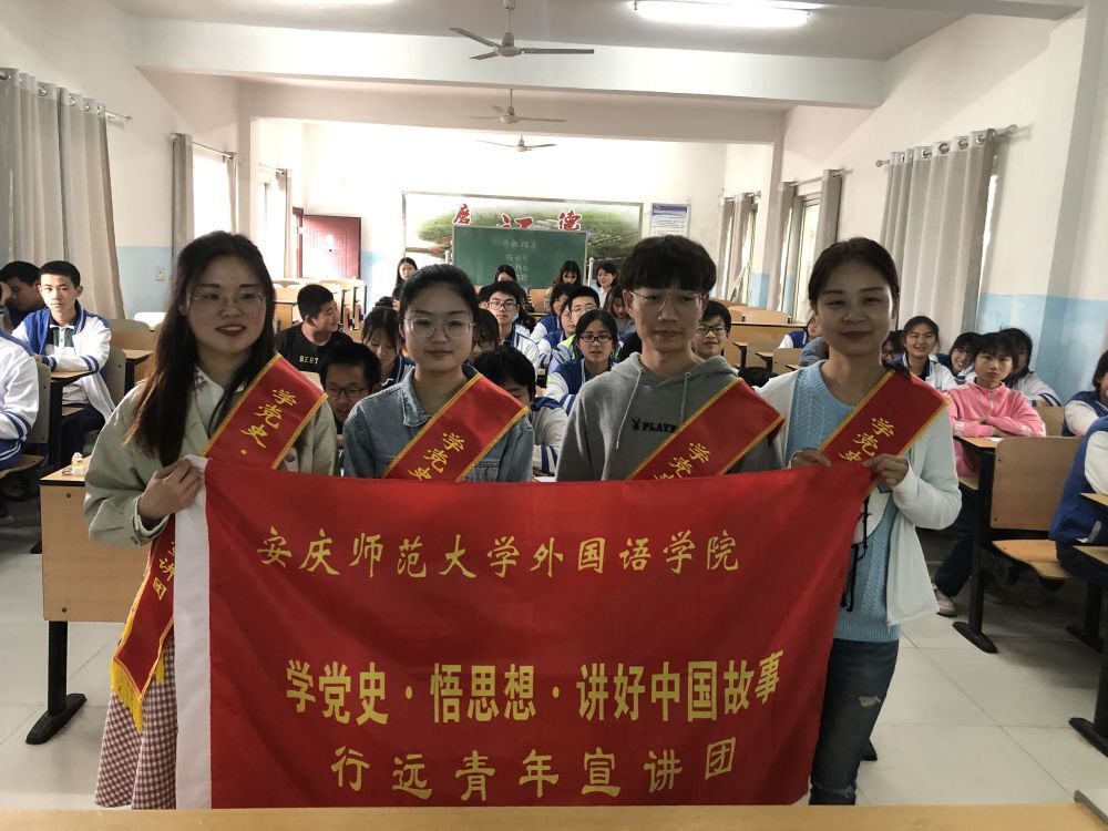 5月20日,谈球吧研究生党支部“行远青年宣讲团”来到安庆市大龙山第一中学开展“党史进课堂”活动,为初二年级的50位员工做党史宣讲,本次宣讲的主题是“弘扬改革创新精神,讲好安徽脱贫故事”。