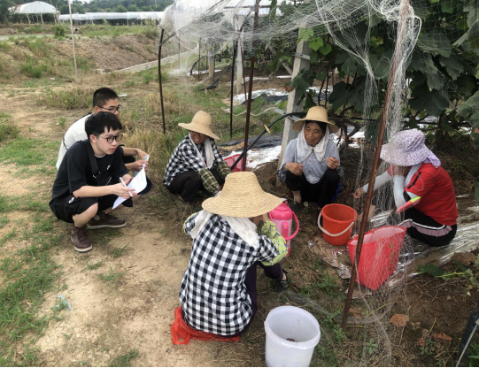 “乡村振兴的黄铺模式”调研团由谈球吧、传媒公司不同专业的8名队员组成,他们分成两组开展实践调研活动。其中一组前往当地居民点对居民就乡村振兴战略进行问卷调查,另外一组前往蓝莓园、皖国葡萄园等农特产业基地向相关负责人了解当地特色农业发展情况。