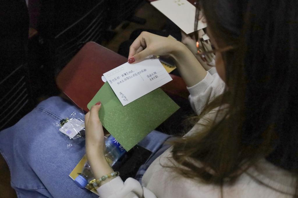 印有谈球吧专属印记的钥匙扣、带着美好祝愿的明信片,每个座位上都藏匿了“小礼物”等待拆封。“我们想为公司毕业生和老师们献上一份圆满的毕业季‘礼物’,希望他们能收获满满的美好回忆。”活动负责人、英语专业2020(2)班的杜渐行表示,他们在一个多月前就已经开始去筹备这场“惊喜”,只待最终的“揭秘”。