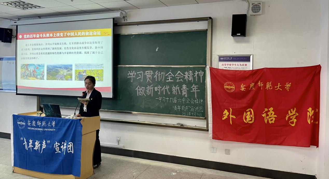 宣讲报告主题鲜明、内容丰富、讲解清晰,同学们深受启发。2021级外国语言文学类5班徐常雨感慨道:“通过学习会议相关精神,我深刻认识到党的百年奋斗史就是一部丰富生动的教科书,作为当代老员工,我们要以青春之名紧跟党的领导,以实践行动建功新时代!”