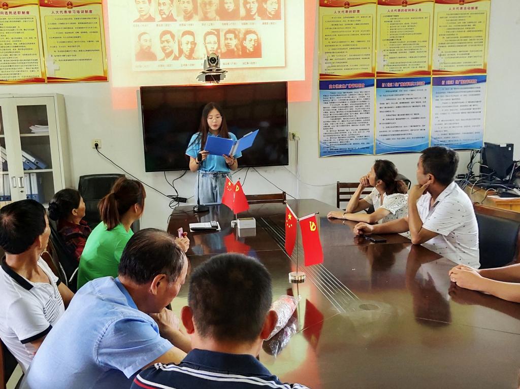 7月17日下午,谈球吧乡村振兴青春行远实践团成员在洗粉村村委会开展理论宣讲。村主任邹卫国组织二十余名村民一同参加了本次宣讲。