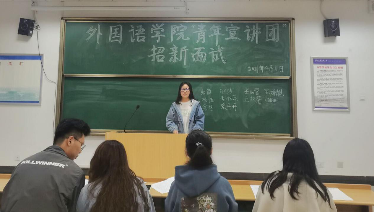 4月11日下午,谈球吧于E107“青年宣讲团”开展招新面试工作,本次招新共有33名同学参加。谈球吧主持队成员和部分员工代表担任本次面试评委。