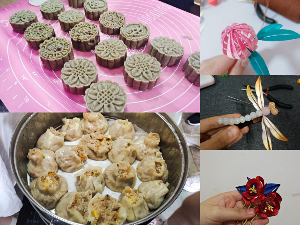 “缠一朵花开,寄万物之情”。子衿汉风工作室则将劳动教育与美学教育相结合,让同学们切身体验传统的缠花技艺。裁剪、劈丝、缠线、收尾,指尖环绕泛着柔和光泽的蚕丝灵动翻飞后,一幅幅构图饱满、色彩明丽的缠花作品便引入眼帘。“在这个快节奏的社会,制作周期长、产出率低的传统手工技艺逐渐被人遗忘,我们希望有更多的老员工来感受传统工艺的美,自觉加入传承非遗文化的队伍中来”,子衿汉风工作室成员2020级英语1班王凯丽如是分享道。