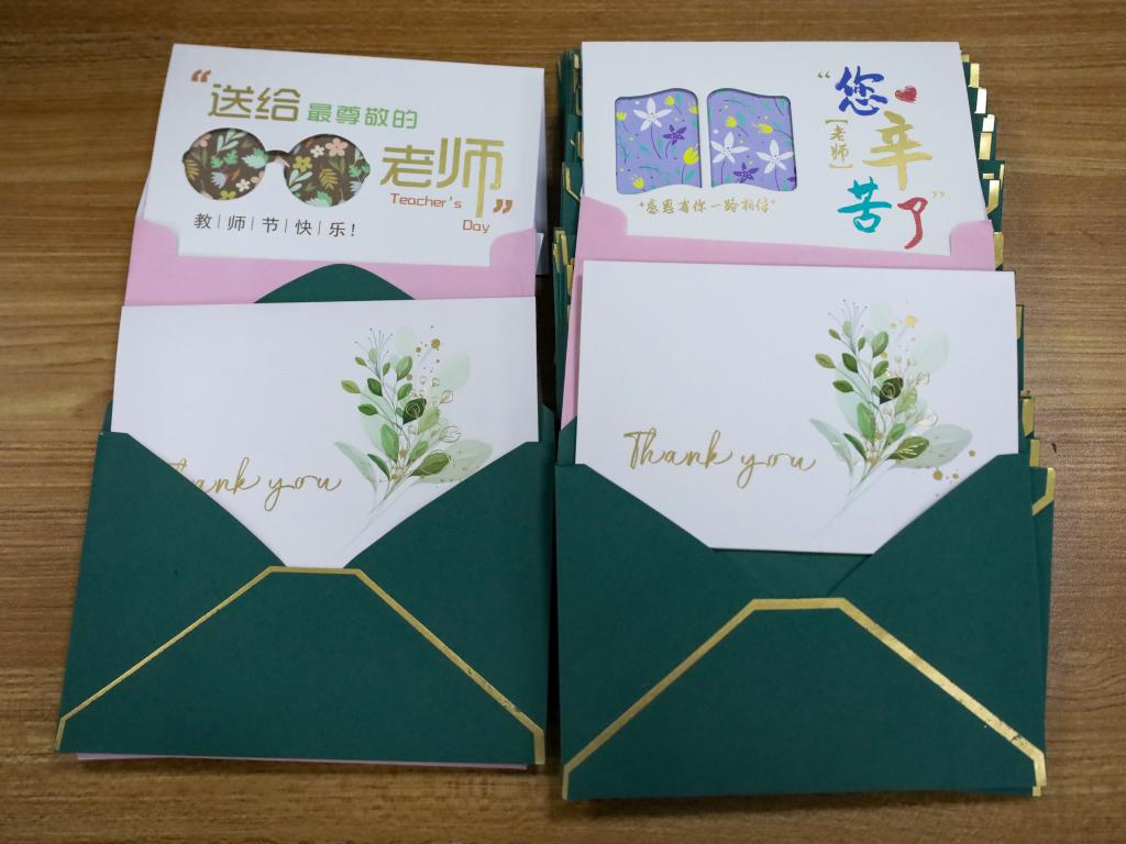 为了赶在教师节前夕为老师们送上精心准备的礼物,8位活动负责员工伴着4天的月光,将粉绿黄3种颜色的卡纸“变身”成功,确保50份“一盏花灯+一笺明信片”的完美组合能够在第一时间“准时配送”到老师们的手中。