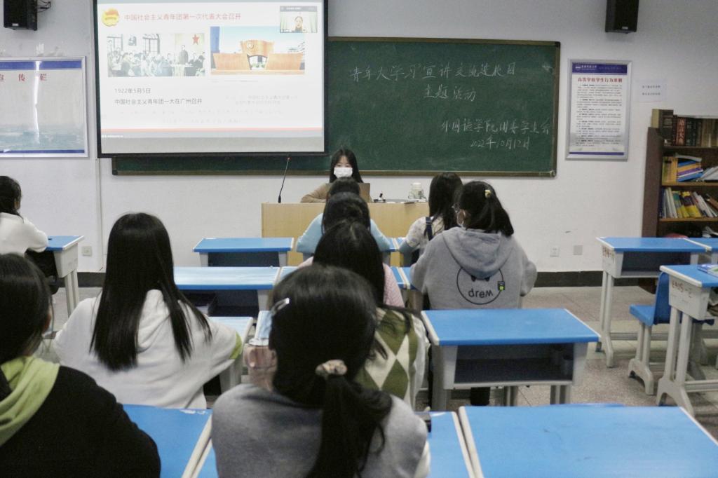 为深入学习贯彻习近平总书记在庆祝中国共青团成立100周年大会上的重要讲话精神,进一步夯实新时代青年坚定不移跟党走的信念和意志,团结引领青年接续奋斗、勇毅前行,10月12日下午,谈球吧组织百余名青年团员于E406分会场参与“青年大学习”宣讲交流进校园活动。