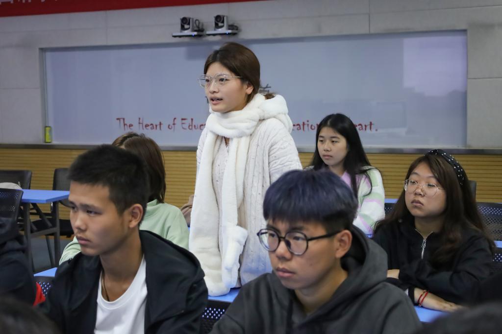 “真的是一次干货满满的学习会!”外国语言文学类专业2022(10)班的陈佳怡表示,活动将英语专业与时事热点相结合,让自己在了解时政的同时也训练了英语表达,“词汇量‘蹭蹭’往上涨”。她表示,自己在朗读到中国十年来的成就时,心中充满了骄傲,也为自己是一名共青团员而感到自豪。“请党放心,强国有我!这是我在活动结束后最想说的话。”