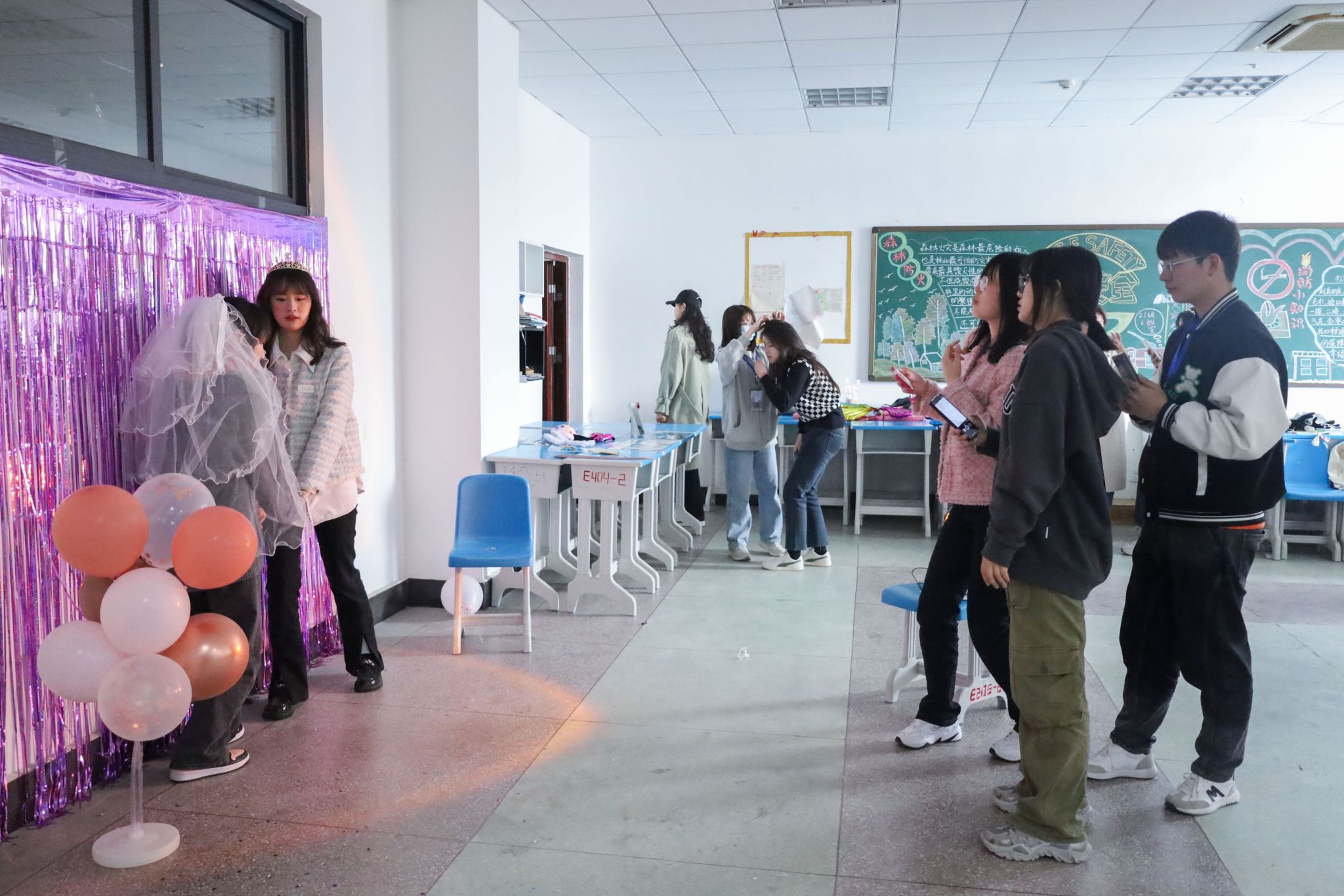 在活动开始前两个小时,工作人员就来到现场进行布置,吹气球、贴布景、摆道具。活动负责人、英语(师范)专业2021(3)班的刘悦表示,希望通过开展此次活动,让女生们大胆地表达与展现自我,发现自己的闪光点,增强自信心,也希望能够在全院营造出一种尊重女生、关爱女生的友好氛围。(撰稿:员工记者 许树群 摄影:员工记者 朱秀萍 审核:何媛君)