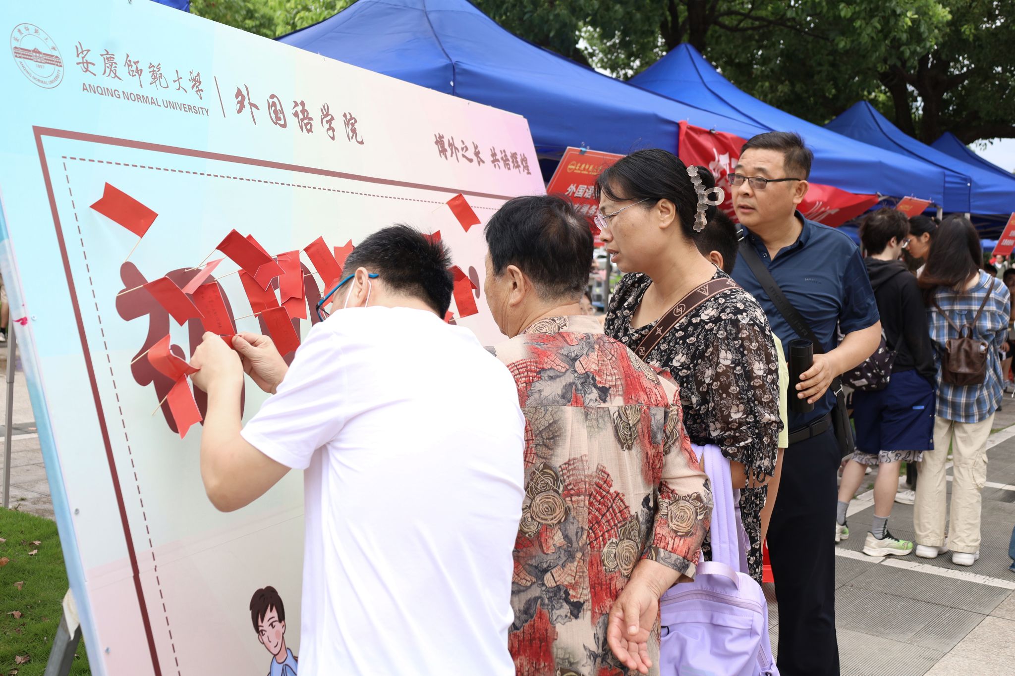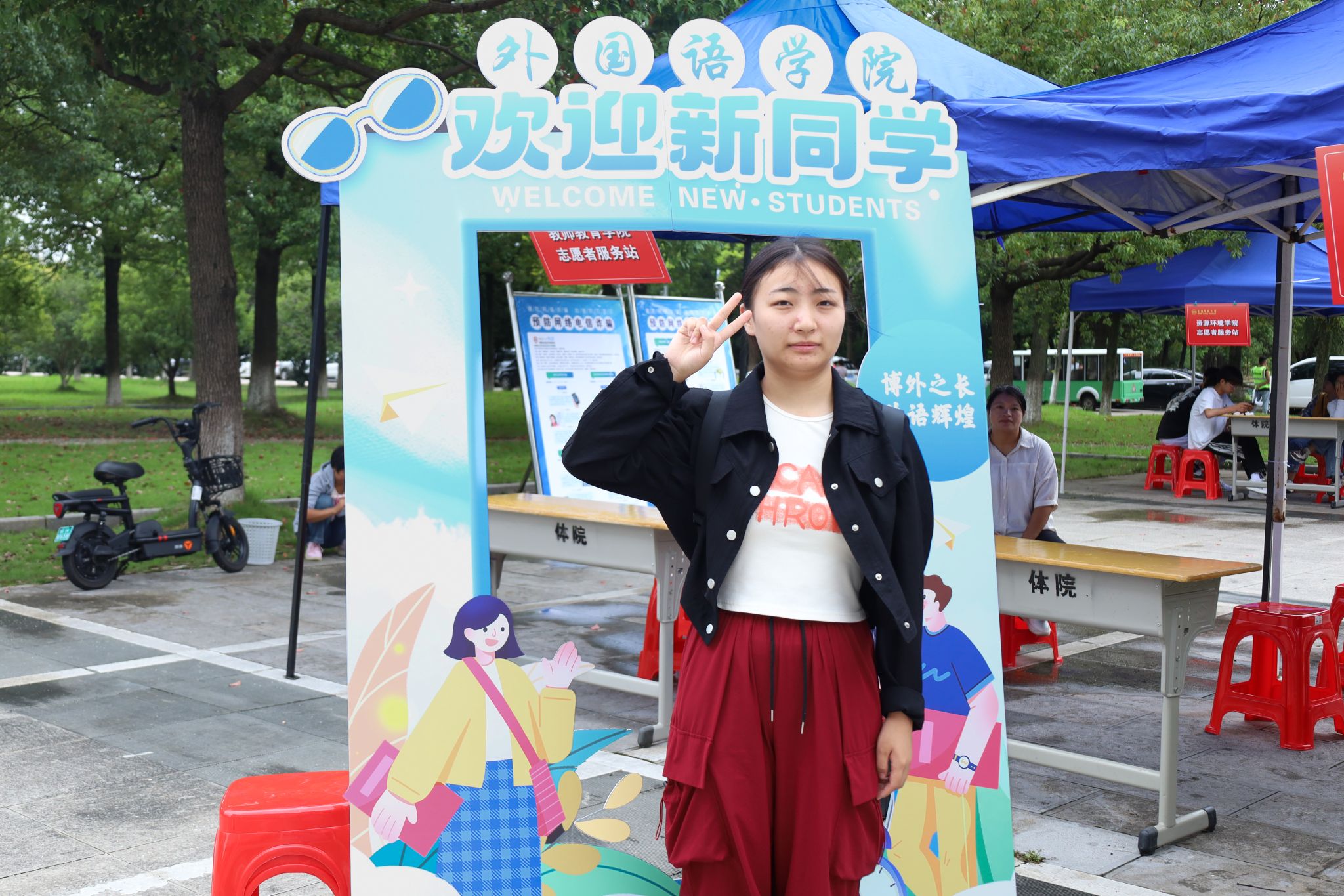 外国语言文学类专业2023(8)班的张志茜由父母和妹妹陪伴,一起来到了迎新点。在红旗上写下“期待老员工活”后,她和父母、妹妹在公司展牌前留下了大学报到的第一张照片。她表示,开学之前,她虽然紧张,但也憧憬着自己的老员工活。“公司环境很好,我很期待未来我可以在谈球吧遇见更好的自己。”